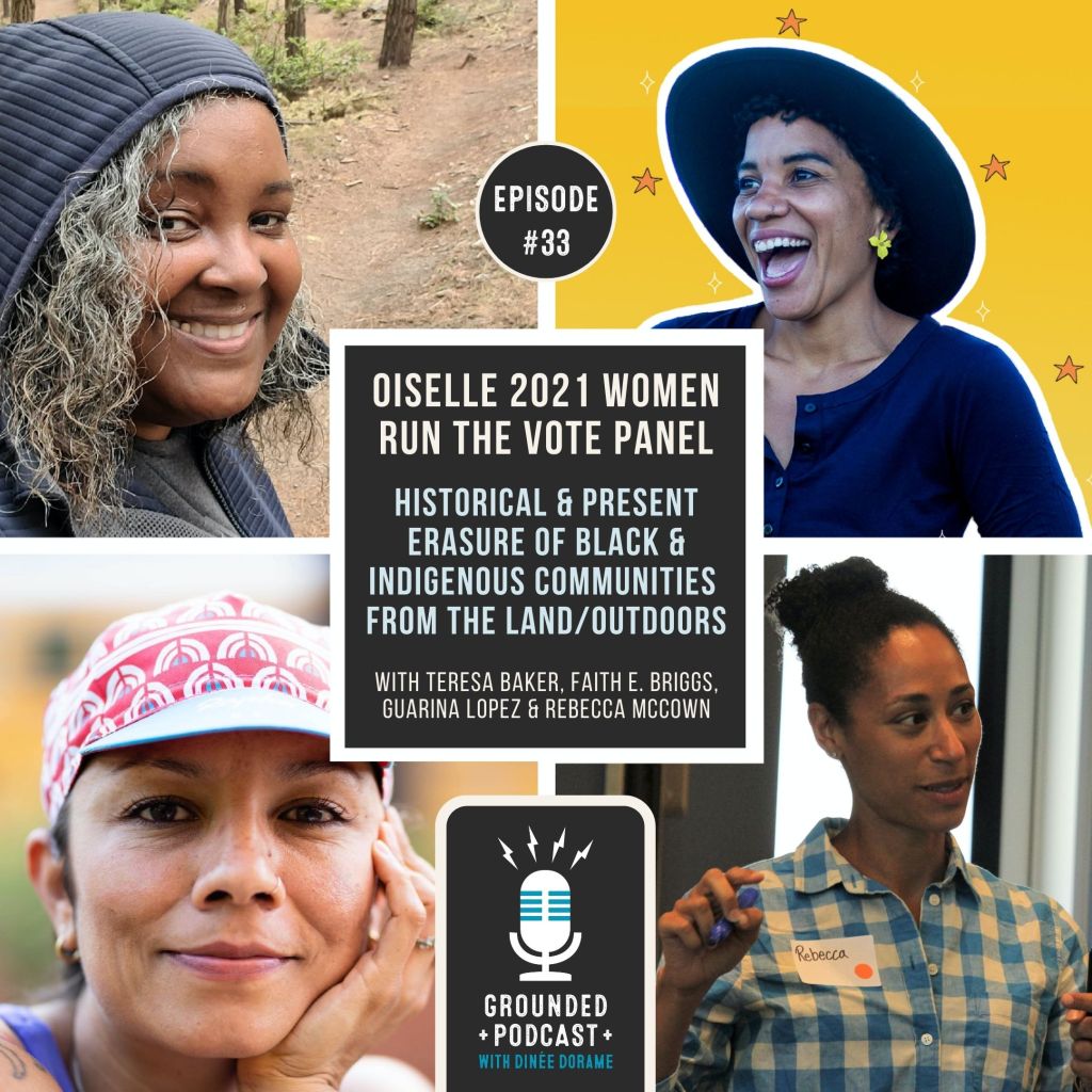 Oiselle 2021 Women Run the Vote Panel (on September 21, 2021) on the historical and present erasure of Black and Indigenous communities from the land/outdoors was moderated by Dinée Dorame, with Teresa Baker, Rebecca McCown, Guarina Lopez, and Faith Briggs.